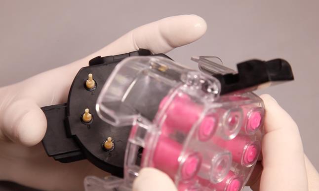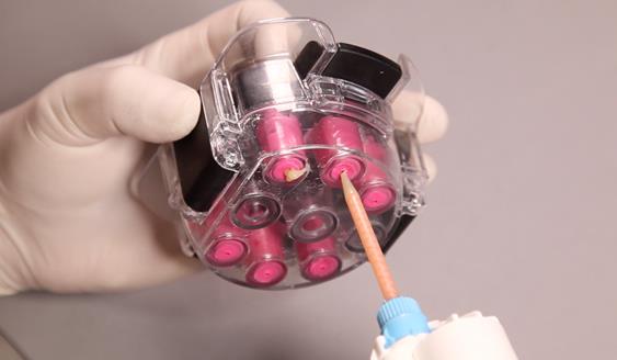 Аналог LA с присоединённым к нему готовым абатментом или несколько аналогов с абатментами, предполагаемые дублироваться, устанавливаются в специальные гнёзда нижней части коробки для дублирования (при этом в гнезде находиться сам аналог, а абатмент, прикреплённый к нему, возвышается над гнездом коробки).