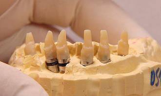 После установки абатментов в полости рта и успешной примерке на них основы каркаса, абатменты можно закрепить постоянно при помощи динамометрического ключа, установить на них временный мостовидный протез и передать модель с дубликатами и основой каркаса в лабораторию для продолжения работы.