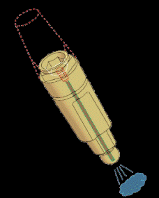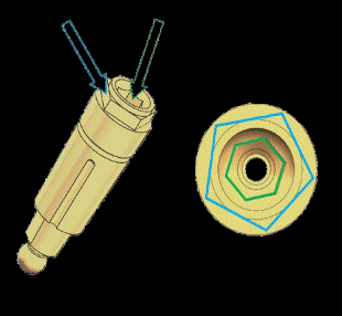 Внутри аналога «LA» обычное входное отверстие для крепёжного винта имеет продолжение вдоль всего тела аналога и заканчивается выходным отверстием в основании сферического выступа на апексе аналога.